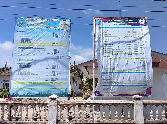 Pantauan media ke beberapa Kantor Kepala Desa,baru ada satu Desa yang sudah memasang baliho,Desa Kampung Padang.Serta baliho tahun 2024 masih terpasang rapi disamping baliho,2025.