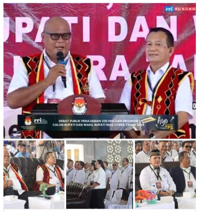 Lahewa Nias Utara, tekab86.com,- Komisi Pemilihan Umum (KPU) Kabupaten Nias Utara menggelar Debat Publik Penajaman Visi, Misi dan Program Calon Bupati dan Wakil Bupati Nias Utara Tahun 2024, pada hari Sabtu (16/11/2024) di Aula Paroki MBK Lahewa.