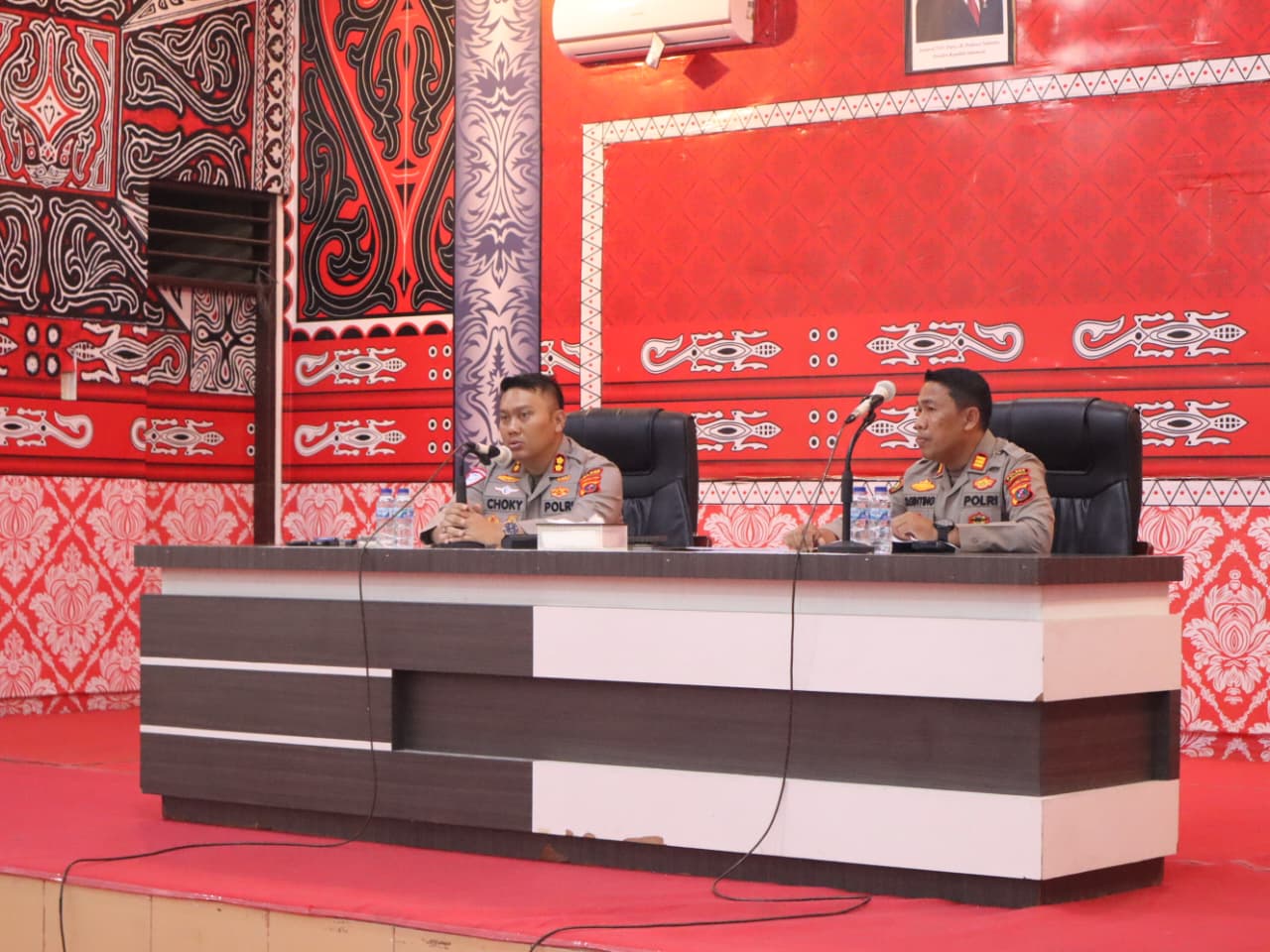 labuhanbatu(tekab86.com) Antisipasi atasi unjuk rasa masa, Kapolres Labuhanbatu AKBP Choky Sentosa Meliala S.I.K. S.H, sampaikan arahan khusus kepada personel Dalmas terkait penanganan massa aksi unjuk rasa, Kamis (28/8/2025) di Aula Yan Piter Mapolres Labuhanbatu, Jalan MH. Thamrin, Rantauprapat