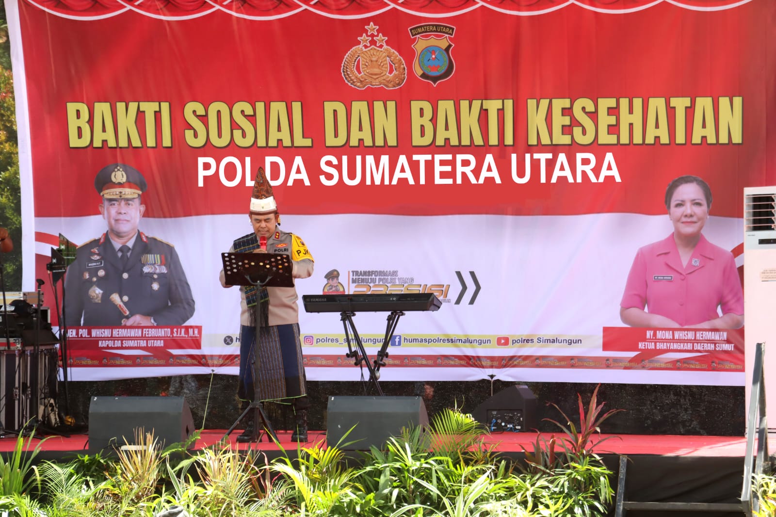 Acara dimulai dengan pembukaan oleh pembawa acara dan doa yang dibawakan oleh Pdt. Anugrah Kristian Barus, S.TH., diikuti dengan sambutan dari beberapa tokoh setempat. Pdt. Juna Saragih, perwakilan dari GKPS, menyampaikan apresiasi kepada Polda Sumut atas kepeduliannya kepada masyarakat. Selanjutnya, Plt. Bupati Simalungun, H. Zonny Waldi, S.Sos., M.M., dalam sambutannya mengungkapkan bahwa kegiatan bakti sosial dan kesehatan ini sangat membantu pemerintah daerah dalam meringankan beban masyarakat, terutama di bidang kesehatan dan kebutuhan dasar lainnya.