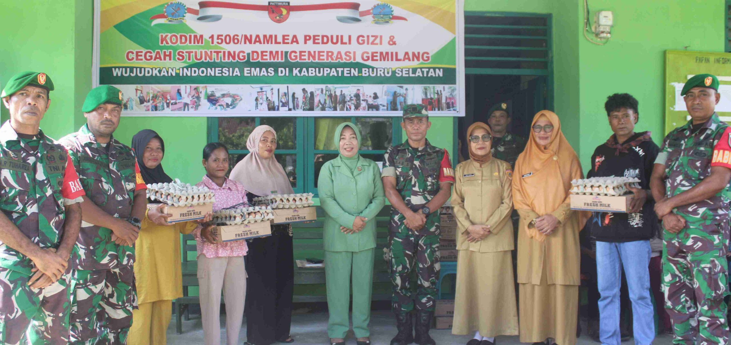 Namrole, tekab86.com – Kodim 1506 Namlea, melalui Koramil 02 Leksula menggelar kegiatan peduli gizi dan cegah stunting demi generasi gemilang wujudkan Indonesia Emas di kabupaten buru selatan