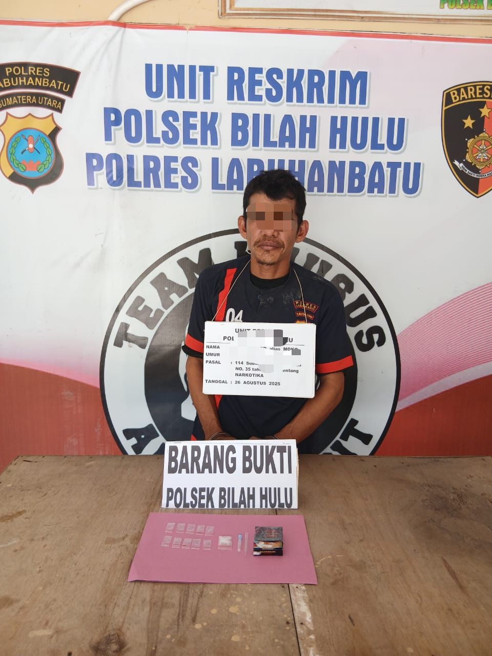 labuhanbatu(tekab86.com)Seorang pria inisial S alias Moko (42) merupakan karyawan BUMN, disikat polisi di kawasan perkebunan Kecamatan Bilah Hulu, Kabupaten Labuhanbatu, Selasa (26/8/2025) sekira pukul 11.45 WIB.