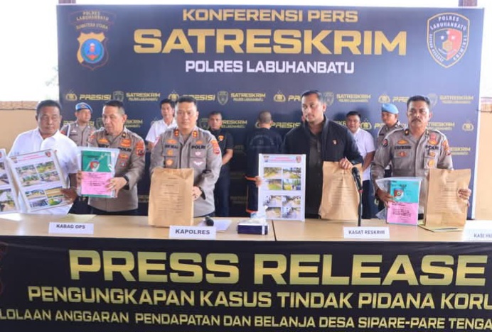 Polres Labuhanbatu menggelar konferensi pers terkait pengungkapan tindak pidana korupsi dalam pengelolaan Anggaran Pendapatan dan Belanja Desa (APBDes) Sipare-pare Tengah, Kecamatan Marbau, Kabupaten Labuhanbatu Utara, untuk Tahun Anggaran 2021–2022. Kegiatan ini berlangsung di Gedung Serba Guna Parama Satwika Mapolres Labuhanbatu pada Kamis (10/4/2025).