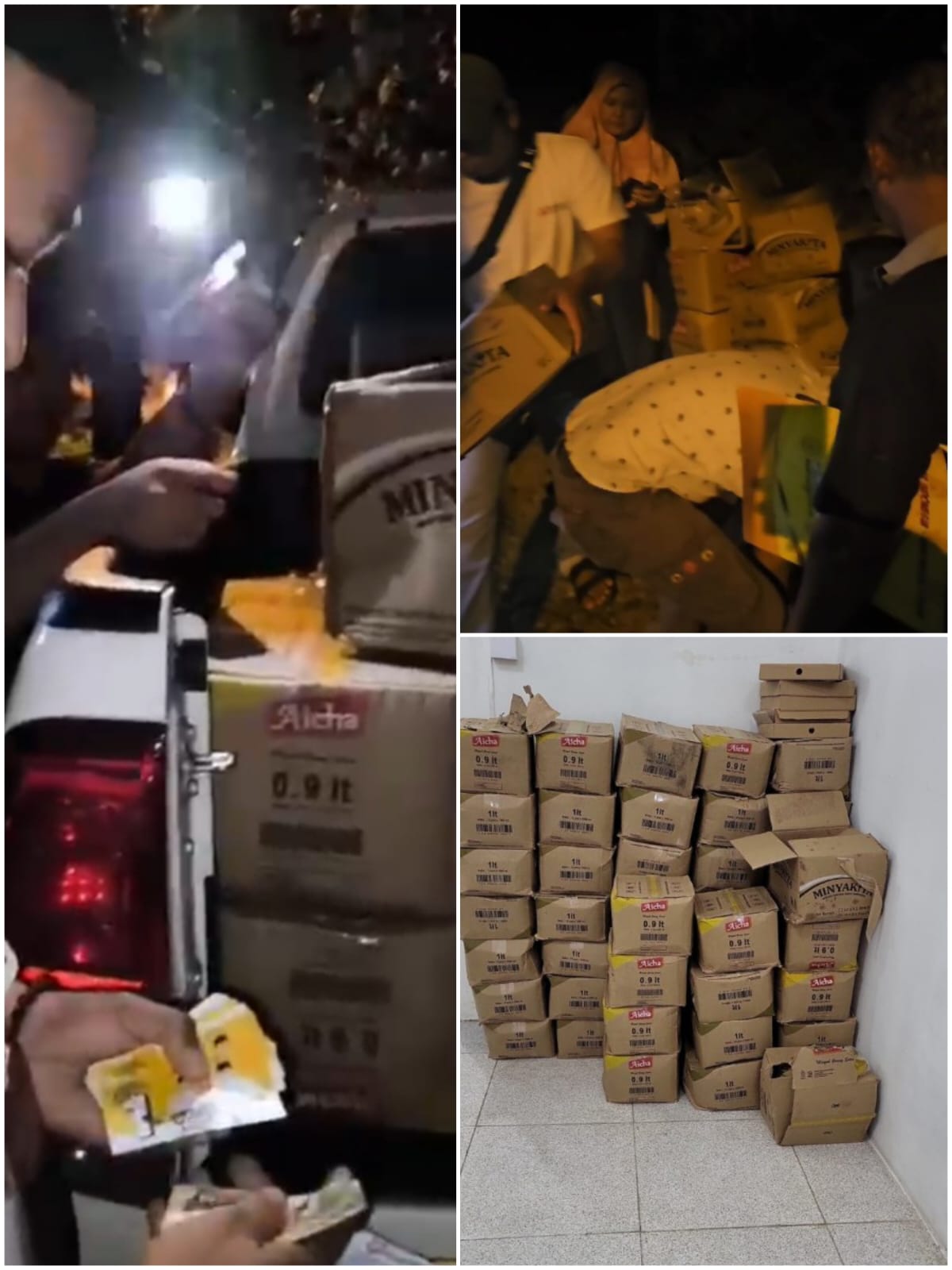 kotak X 12 (kemasan 1 liter), Minyak goreng merek AIcha, sebanyak 11 kotak x 12 (kemasan 1 liter), Kotak minyak goreng kosong Merek minyak kita, Topi bertuliskan Sudao Nasaruddin-Abu Bakar sebanyak 5 Pcs, Kartu nama calon bupati Nasaruddin – Abu Bakar