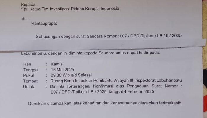 Pasalnya, Senin (21/7/2025) melalui anggota inspektorat Kabupaten Labuhanbatu insial Rizky R, memanggil pelapor dan ironisnya tampa surat resmi meminta Keterangan kepada Pelapor atas laporan dugaan korupsi Dana Desa Pematang Seleng di tahun 2022 dan 2023.