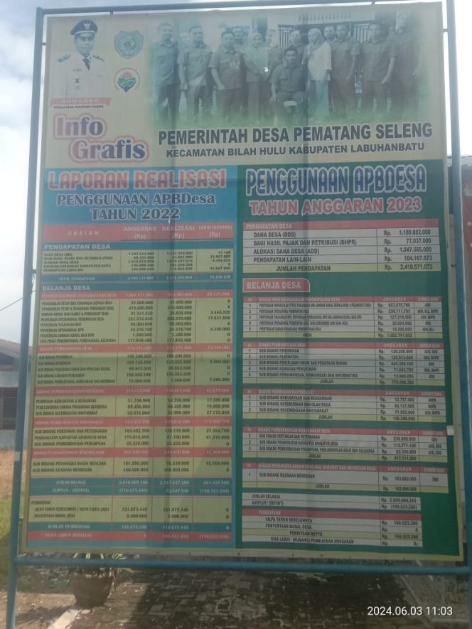 Photo gambar papan Billboard dan Kepala Desa Pematang Seleng.