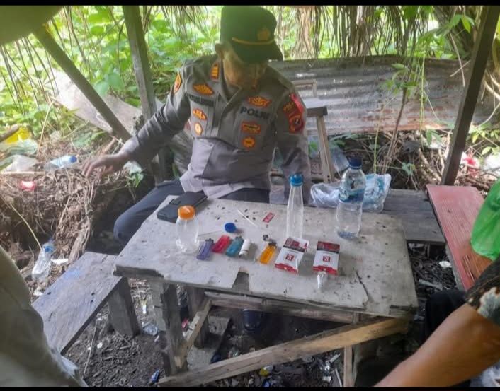 Dalam operasi tersebut, tim pertama kali menyisir gubuk yang berada di semak-semak areal kebun sawit milik warga. Di lokasi ini, petugas menemukan sejumlah barang bukti berupa dua bong yang terbuat dari botol air mineral, beberapa pipet, tujuh buah mancis, empat plastik klip transparan, dan satu bungkus rokok. Atas persetujuan warga setempat, gubuk tersebut langsung dirubuhkan agar tidak lagi digunakan sebagai tempat transaksi atau penyalahgunaan narkotika.