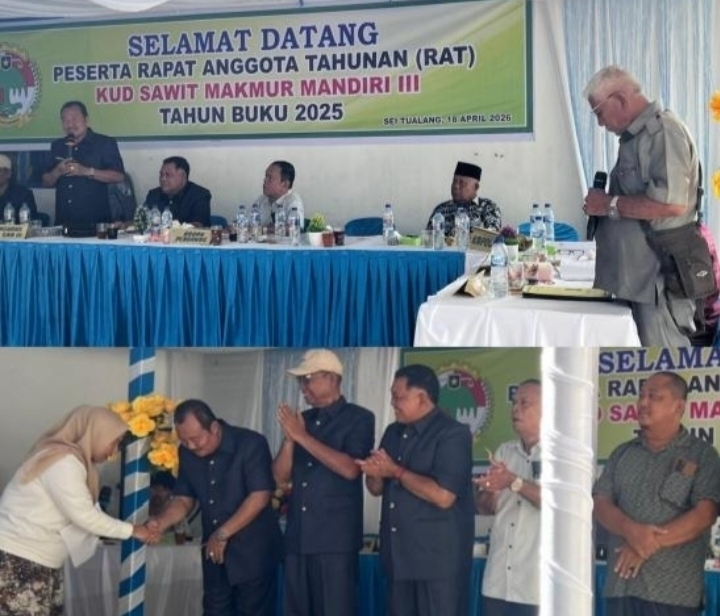 Labuhanbatu utara(tekab86.com)Rapat Anggota Tahunan (RAT) KUD Sawit Makmur Mandiri III (SMM III) yang dilaksanakan di Desa Bandar Selamat, Kecamatan Aek Kuo, berlangsung dengan tertib, lancar, dan penuh semangat kebersamaan. Seluruh anggota menerima laporan pertanggung jawaban pengurus sebagai bentuk transparansi dan akuntabilitas kinerja koperasi.sabtu 18/4/26