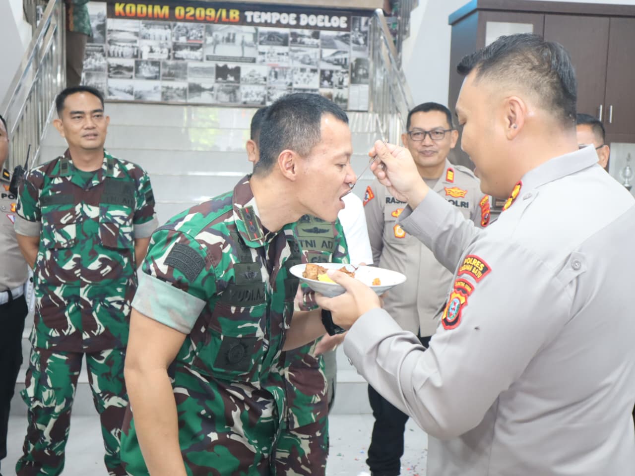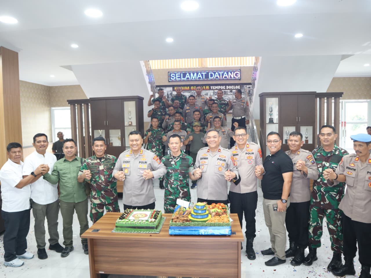 Labuhanbatu (tekab86.com) Kapolres Labuhanbatu AKBP Choky Sentosa Meliala, S.I.K.,S.H. bersama jajaran berikan surprise kue ulang tahun kepada keluarga besar Kodim 0209/LB, Jumat (10/10/2025).