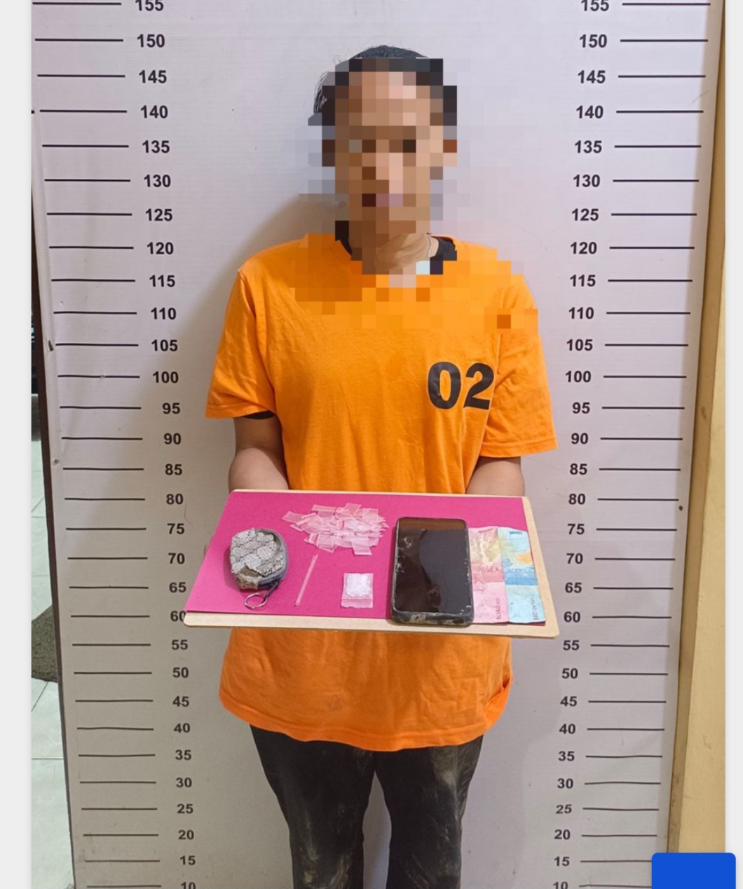 Dari pelaku, petugas menyita sejumlah barang bukti, yakni 1 bungkus plastik klip sedang berisi sabu  seberat 1,73 gram bruto, 40 plastik klip kosong dan Uang tunai sebesar Rp150.000 diduga hasil penjualan sabu.