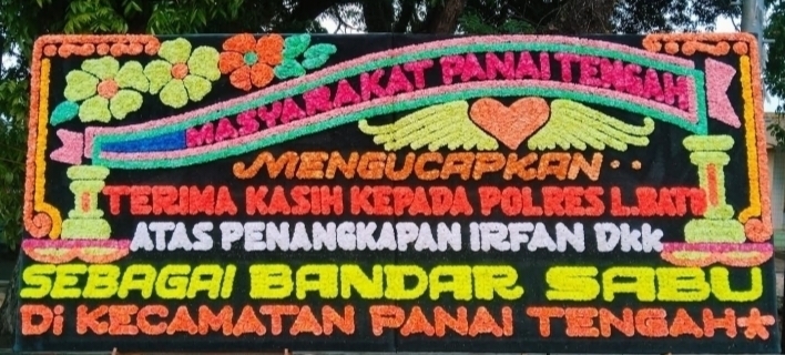Ucapan bertuliskan “Terima Kasih kepada Polres Labuhanbatu atas Penangkapan Irpan dkk BD Sabu di Kecamatan Panai Tengah”,  menjadi simbol nyata bahwa masyarakat mendukung langkah tegas aparat untuk memberantas peredaran narkotika.